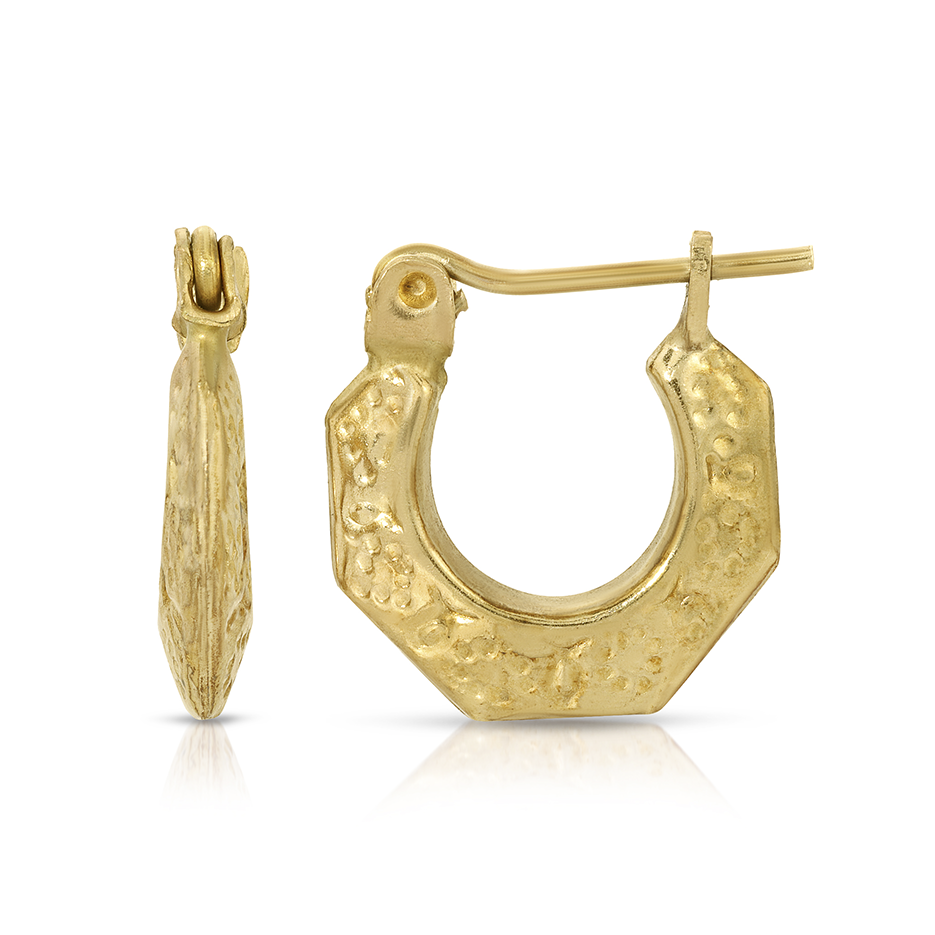 10K Yellow Gold 1/2" Etched Design Hoop Earring