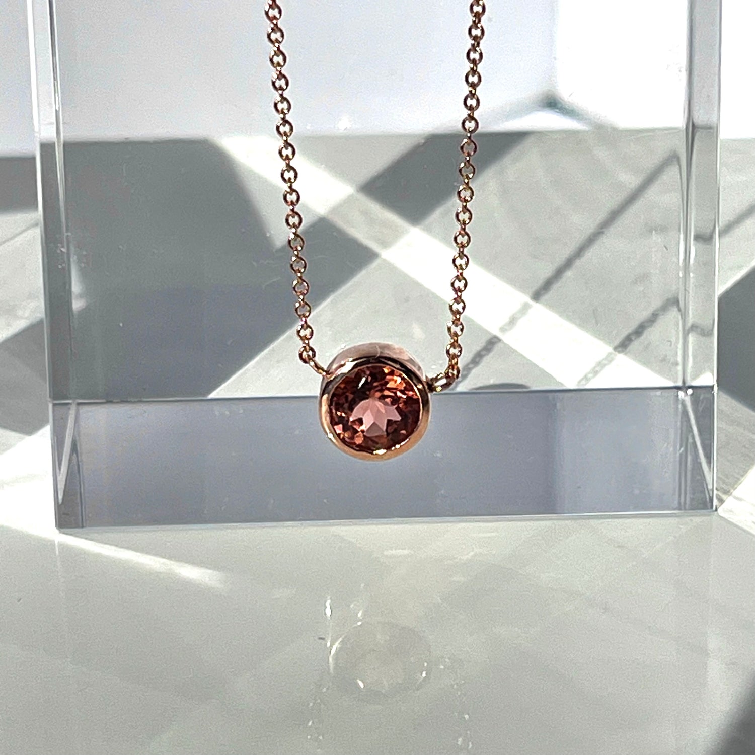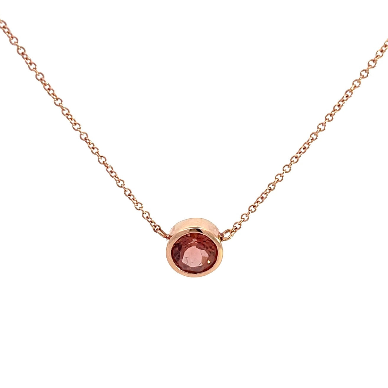 One of a Kind High Grade Peach Tourmaline Solitaire Pendant in 14K Rose Gold