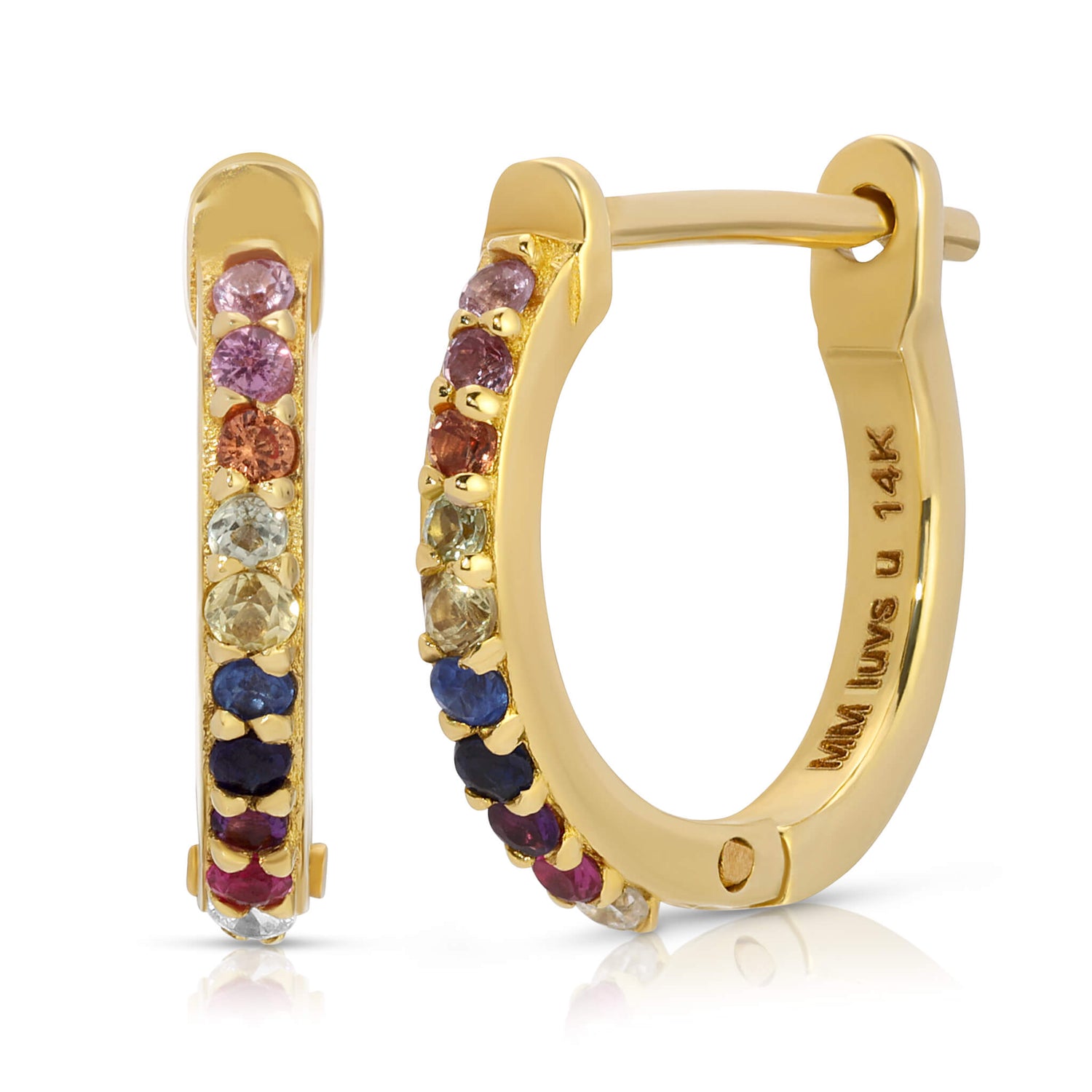 11.5 mm 14K Gold Rainbow Sapphire Diamond Huggie
