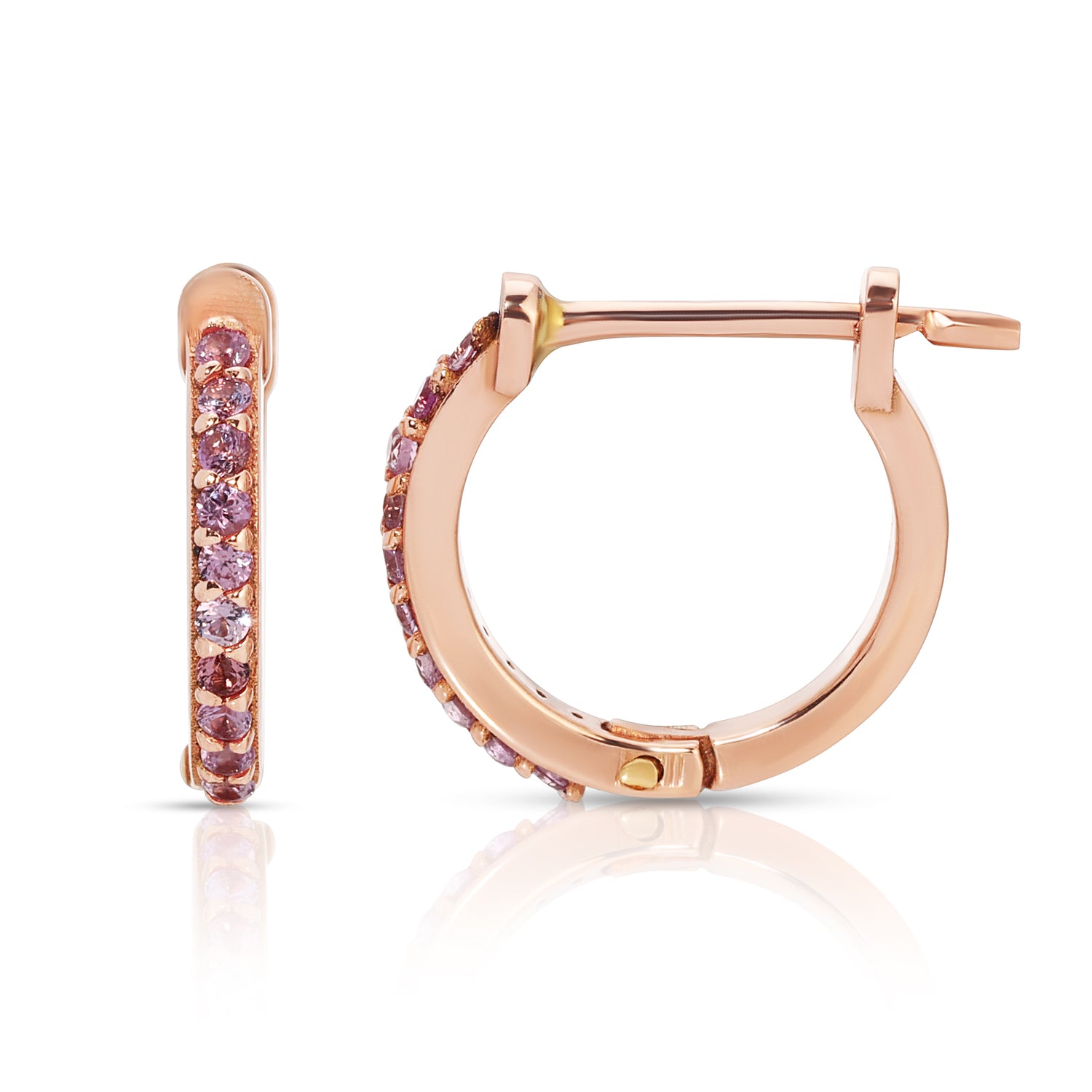 14K Rose Gold 11.5mm Pink Sapphire Hinged Huggie Earrings