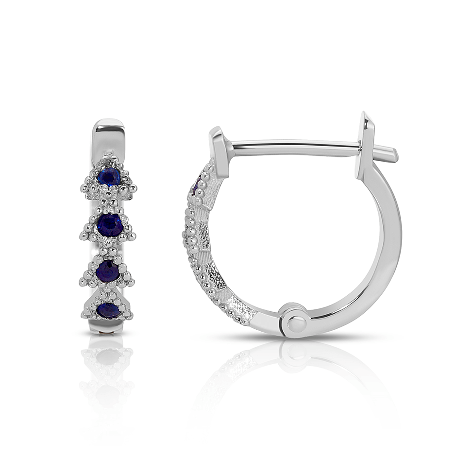 14K White Gold 11.5mm Blue Sapphire Trinity Huggie Earrings