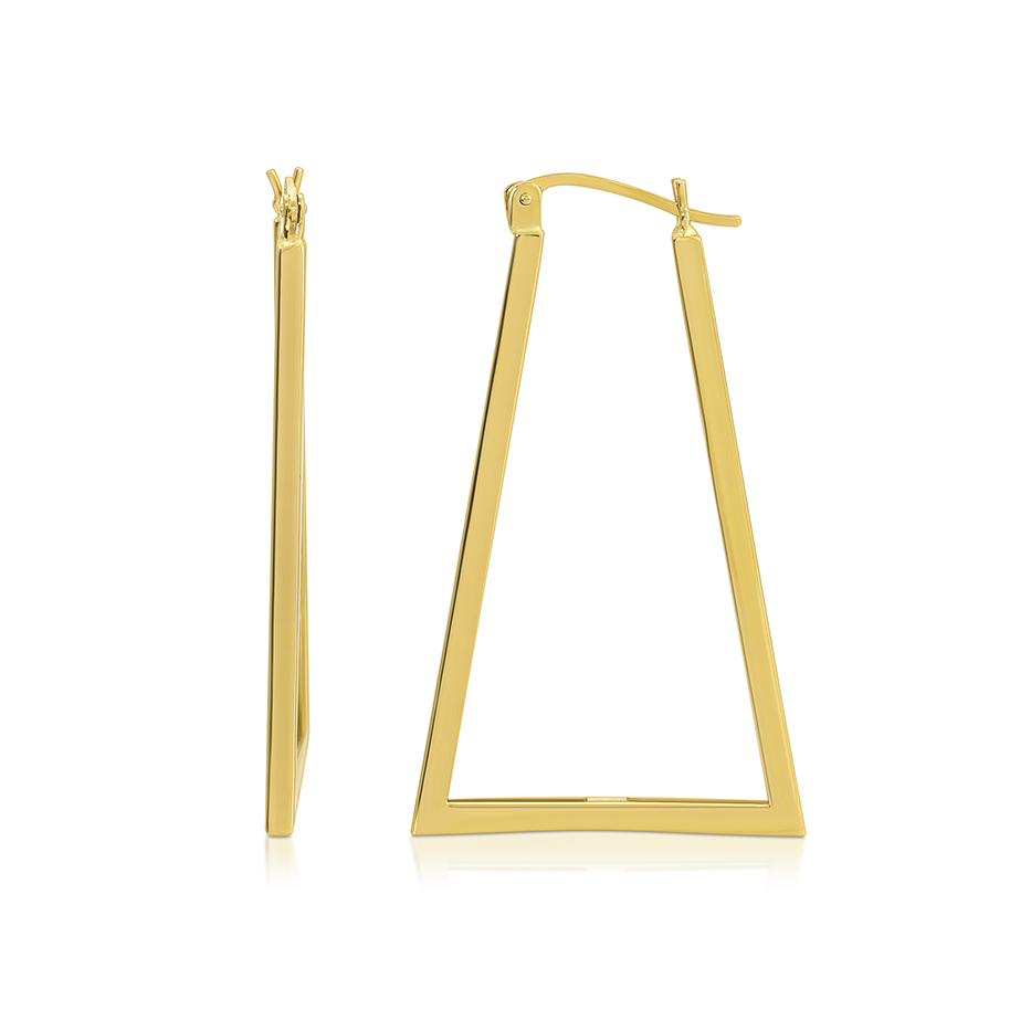 2mm 14K Yellow Gold Triangle Earrings, 1 1/2" drop
