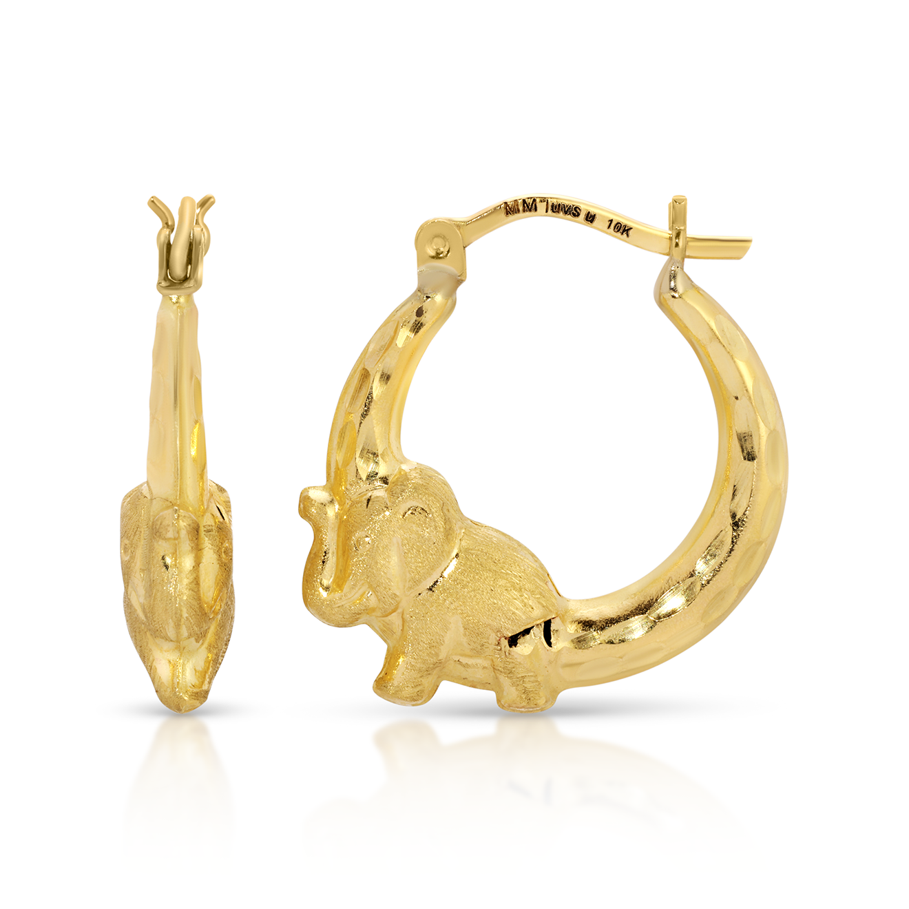 3/4" 10K Gold Elephant Hoop Earrings