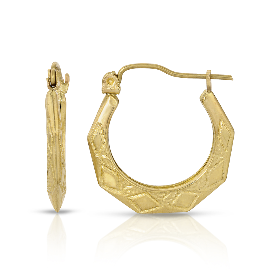 3/4" 10K Gold Sacred Geo Etched Design Hoop Earrings
