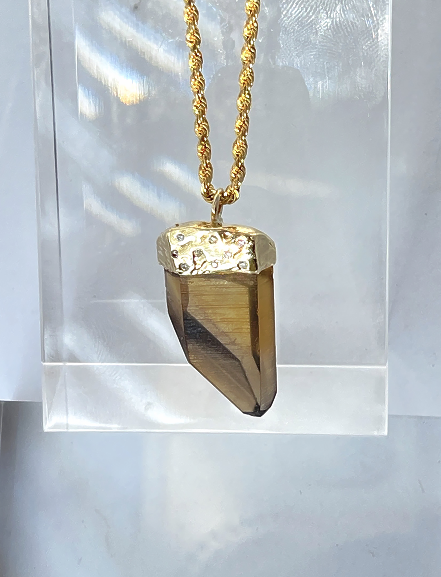 Diamond Bezel Set Smoky Citrine Pendant on Gold Rope Chain