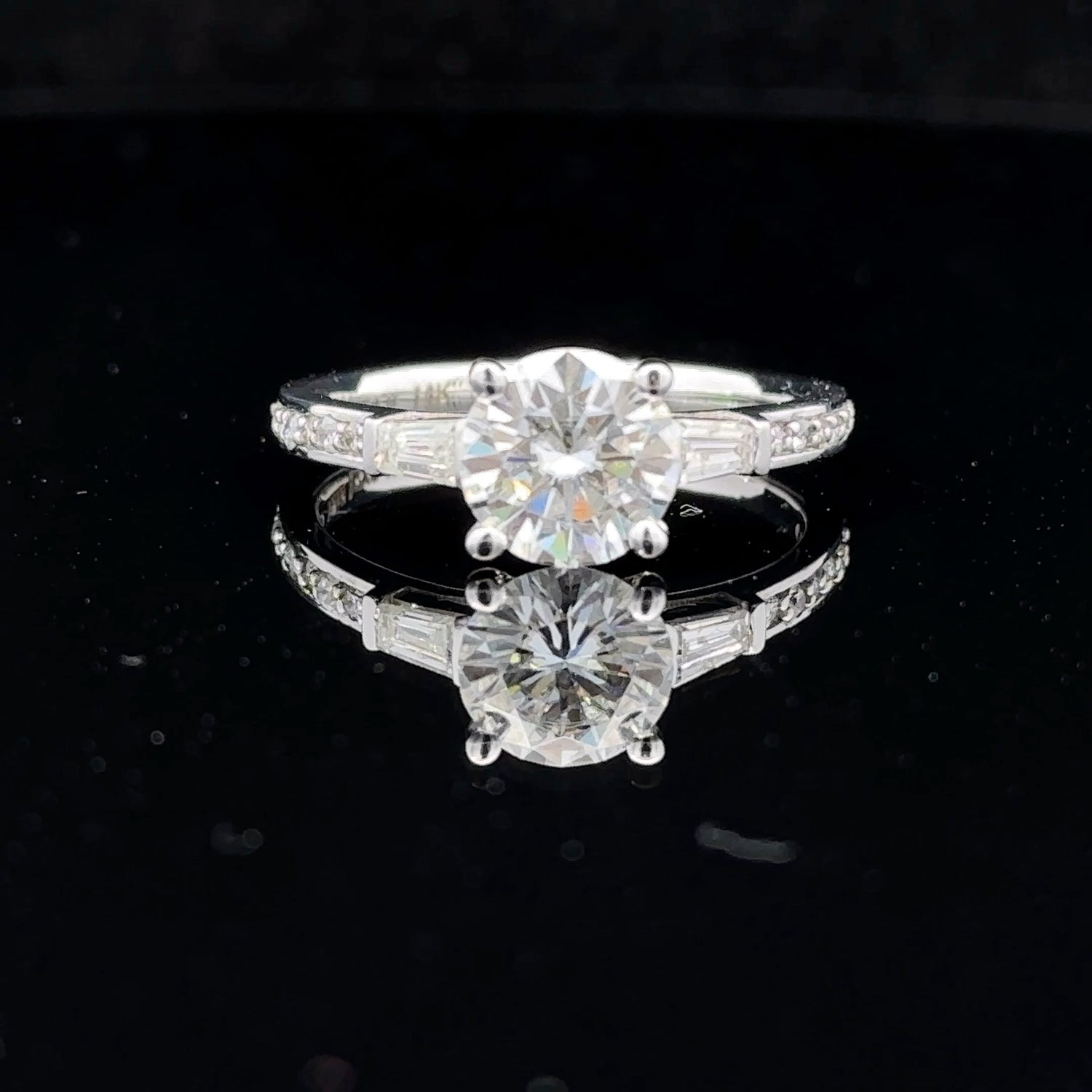 - Two 1.5mm x 2.5mm natural VS1 tapered baguette cut diamonds (0.48 ctw)