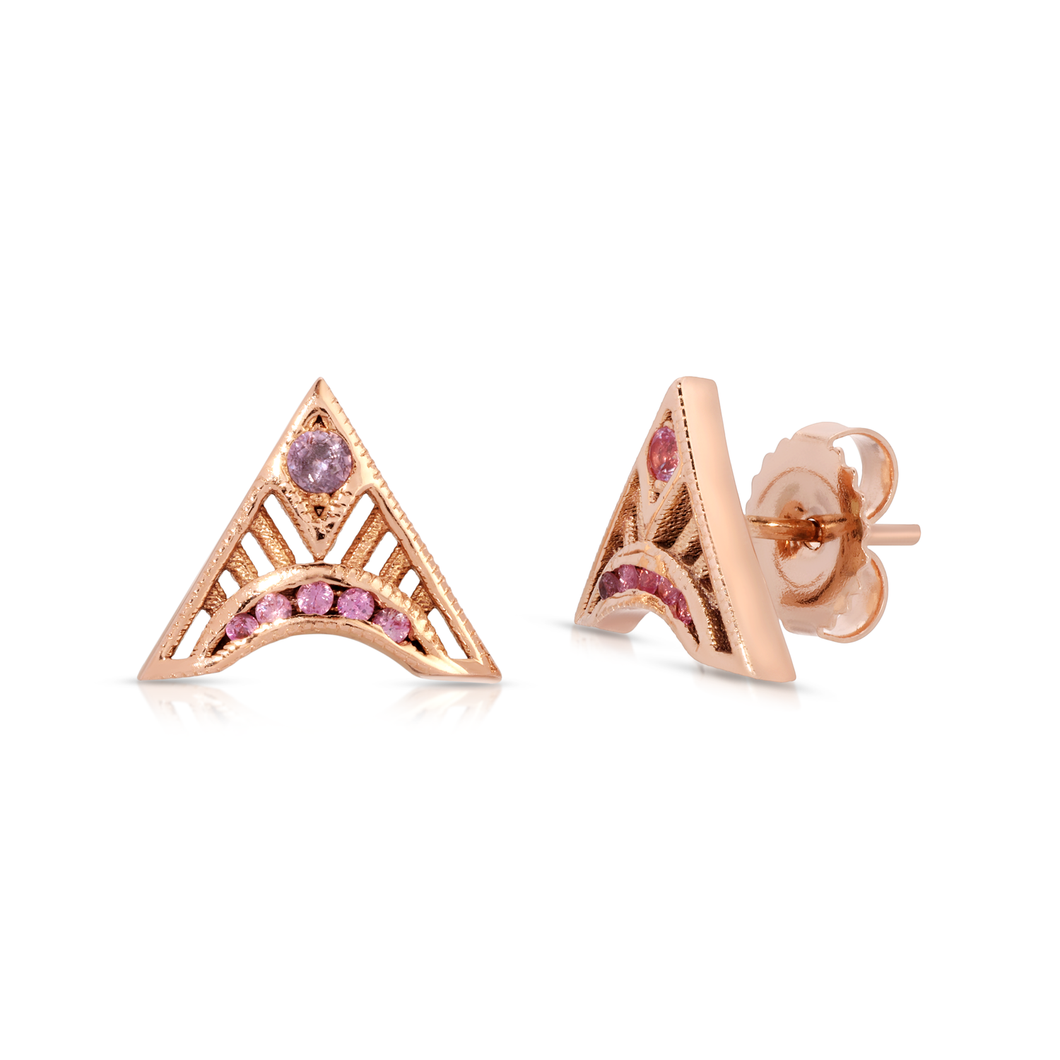 1.8 ctw Pink Sapphire Geometric Curved Triangle Stud Earring