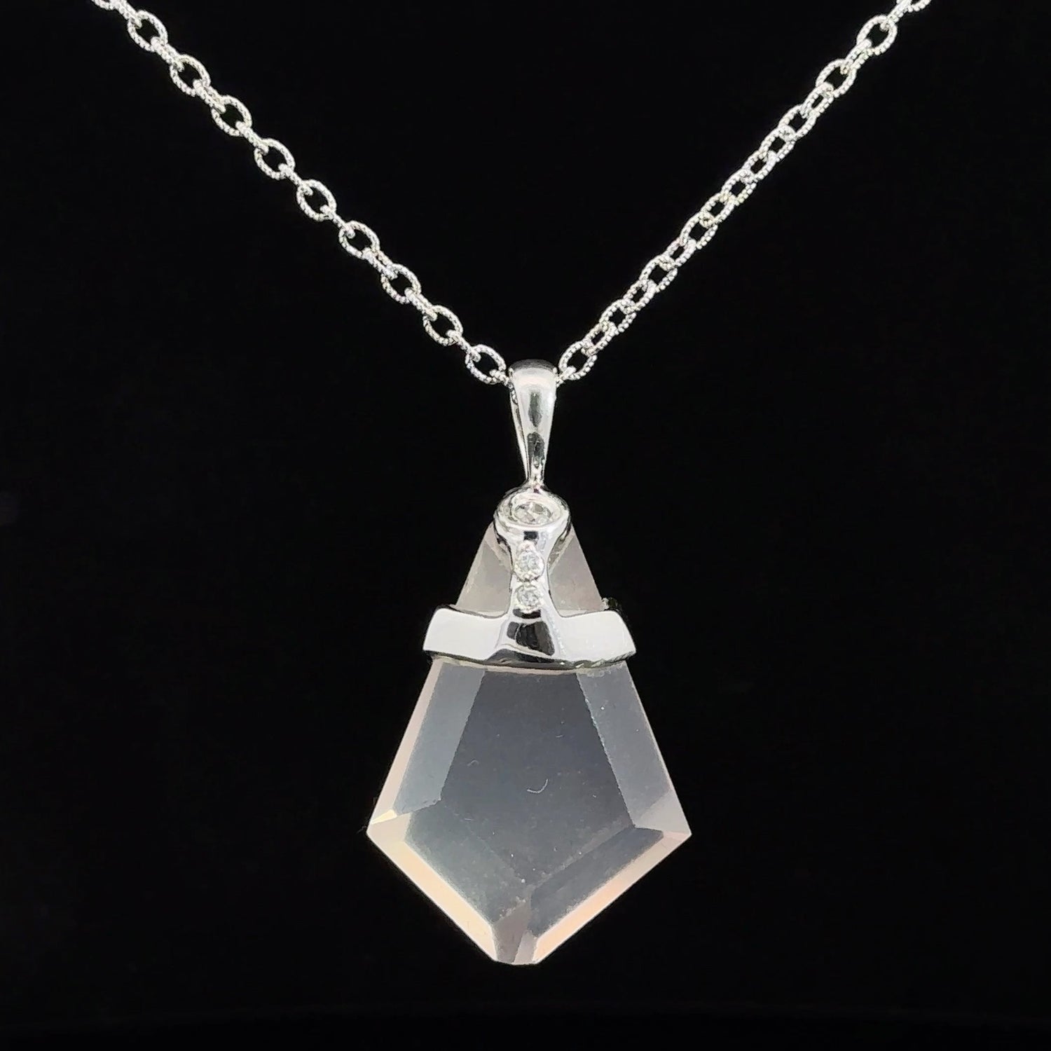 Rose Quartz, Diamond and Purple Sapphire Shield Pendant