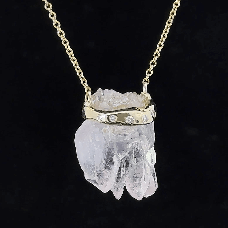Terminated Rose Quartz & Diamond Bouquet Pendant