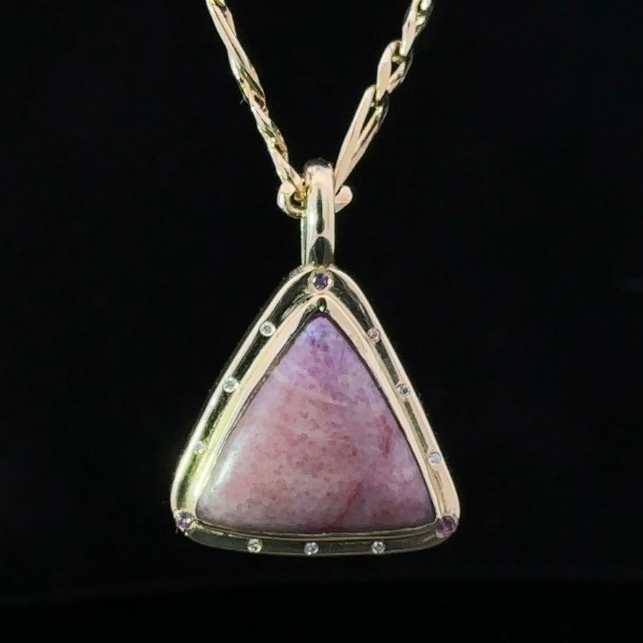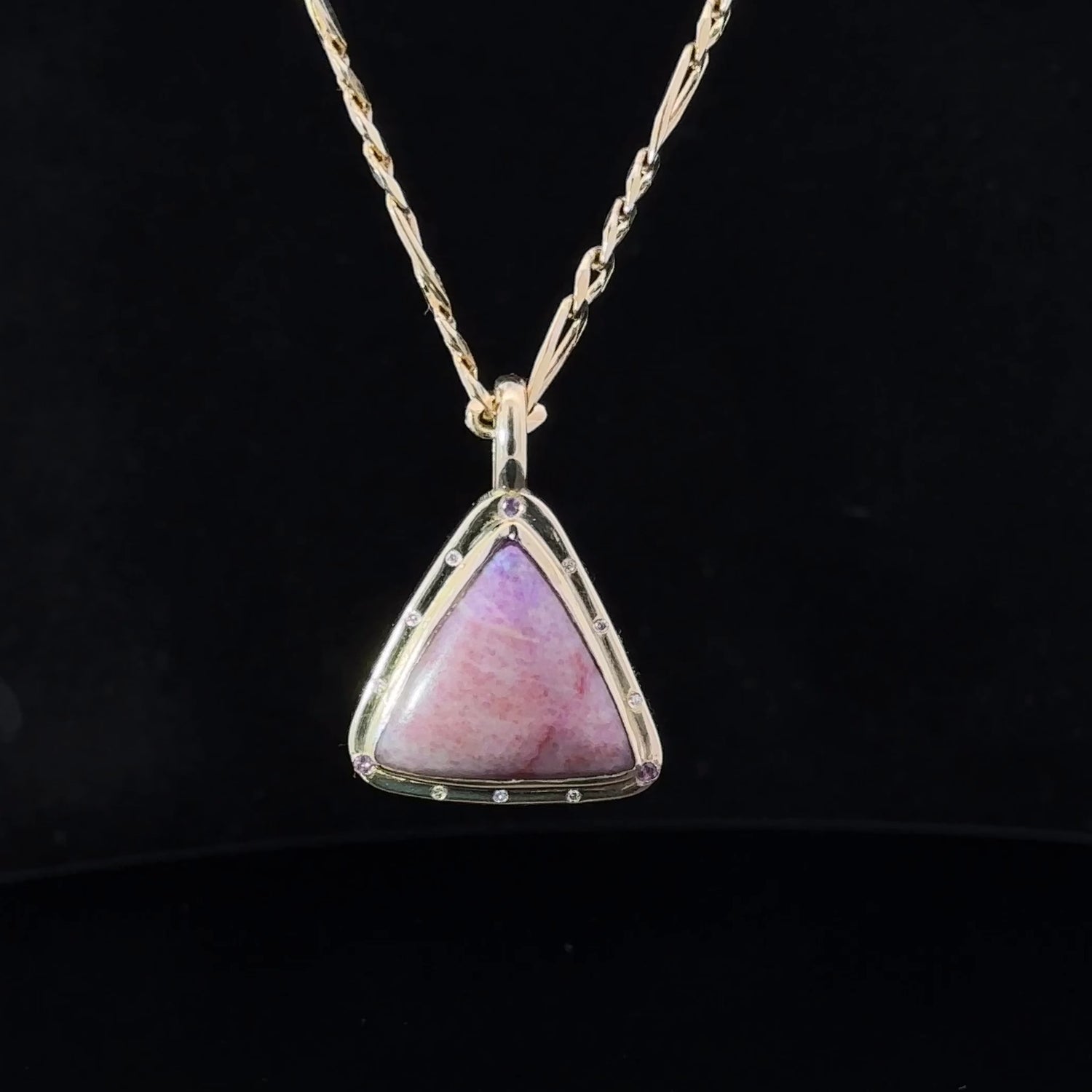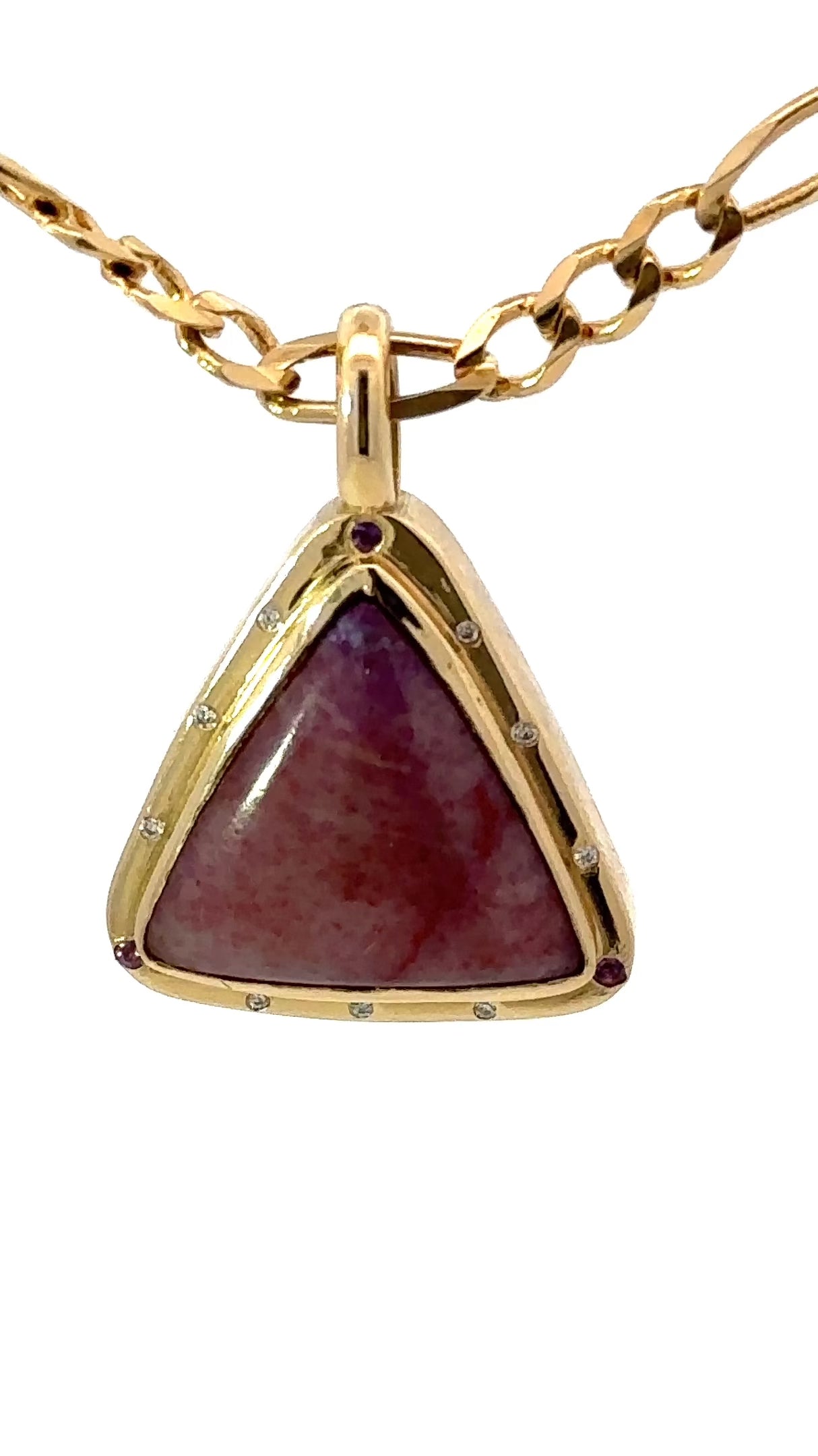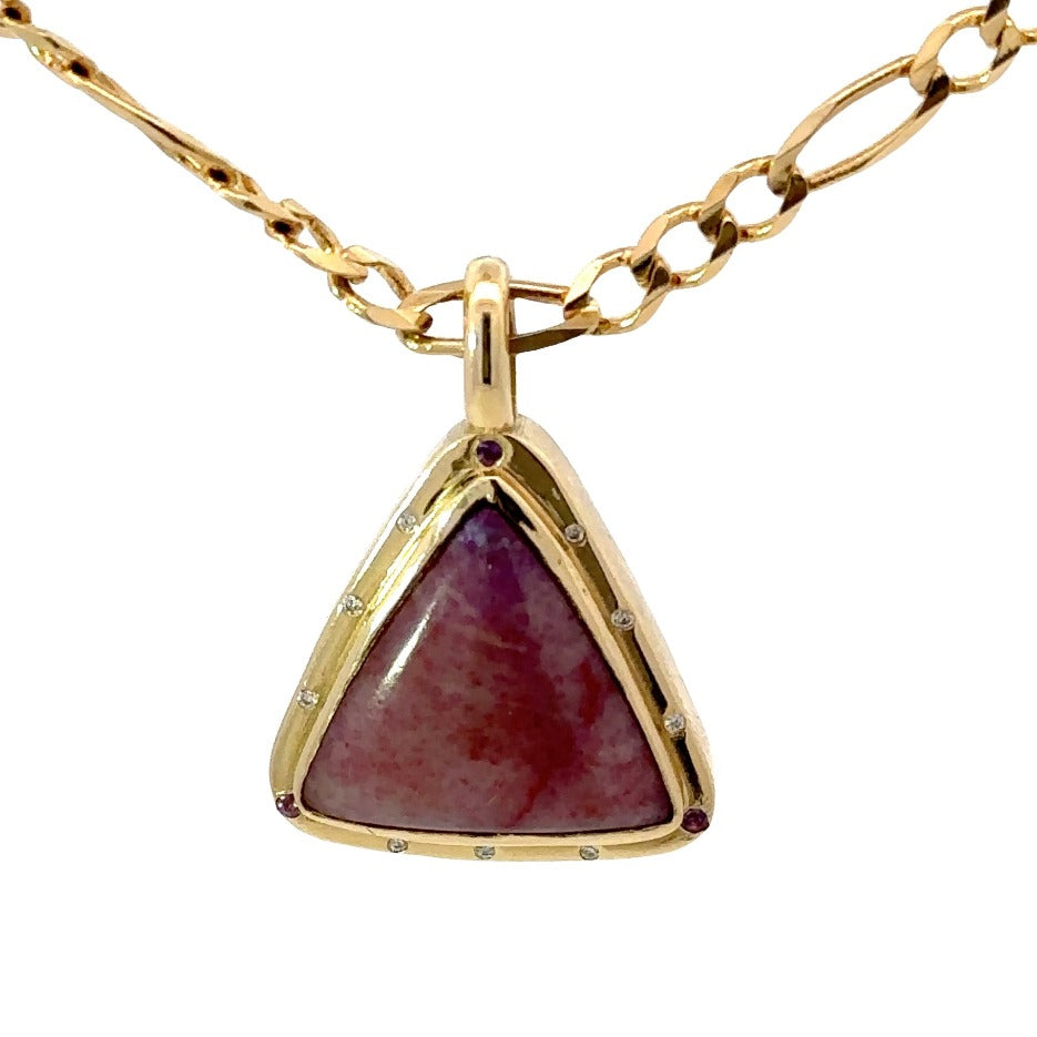 Triangle shaped Bustamite Pendant on 16" 14K Gold Figaro Chain